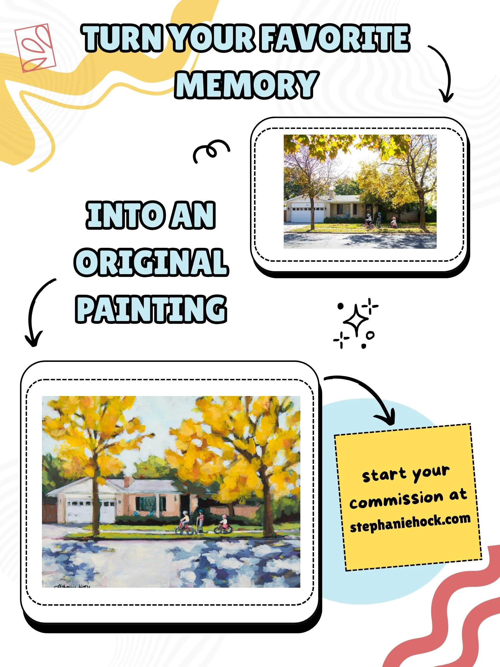 Let’s turn your favorite memory into a custom original painting! I love painting one of a kind art that captures what is special for YOU and your loved ones.