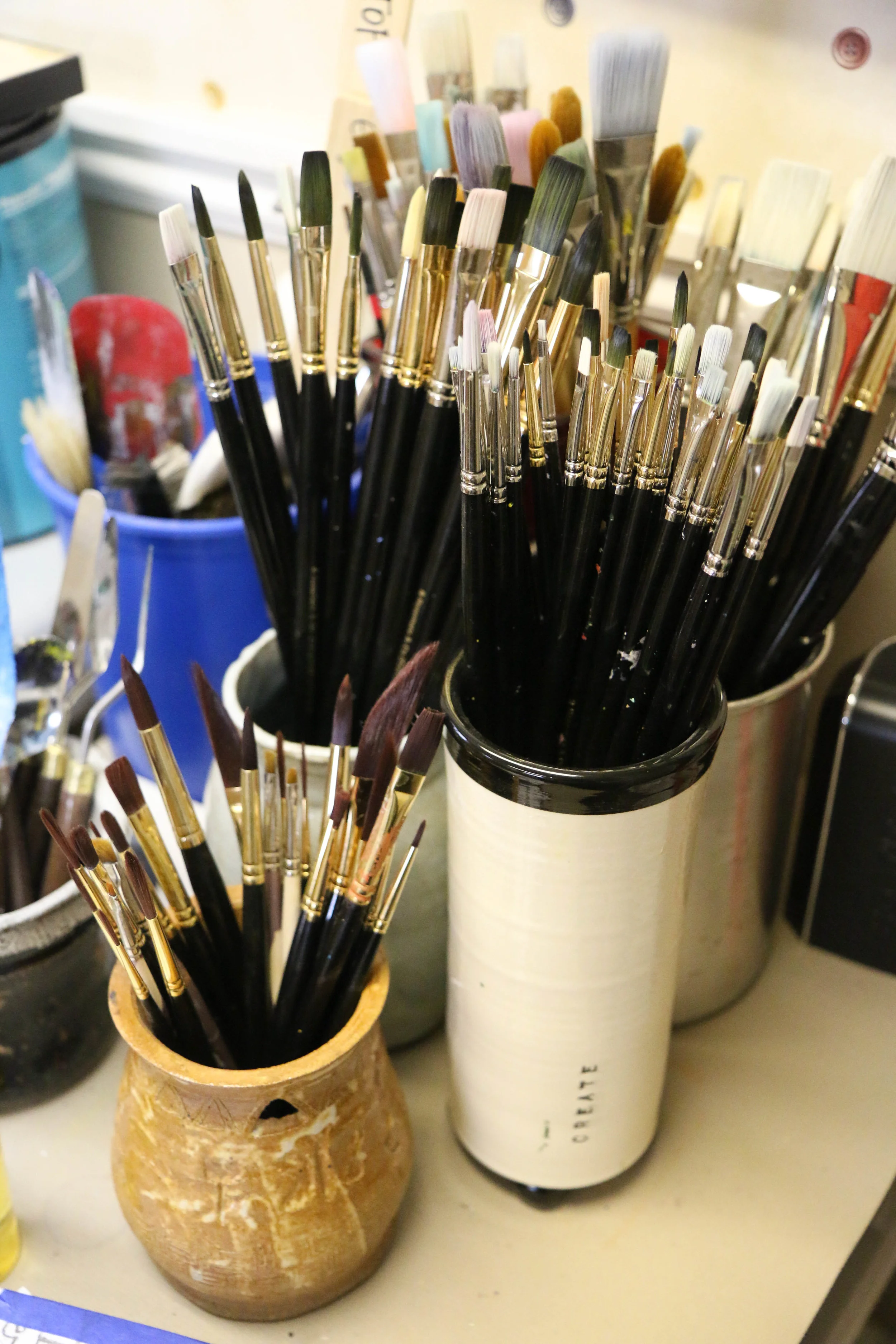 My favorite brushes come all the way to my Utah studio from England! There's a great company there called Rosemary Brushes (https://www.rosemaryandco.com/) and I'm convinced they make the best brushes on the market. They hold paint so well and are surprisingly affordable for being so great. The company is wonderful to work with and it's like Christmas to open up their brown paper packages. My current favorite are the Evergreen Long Flats, but I really think you can't go wrong.