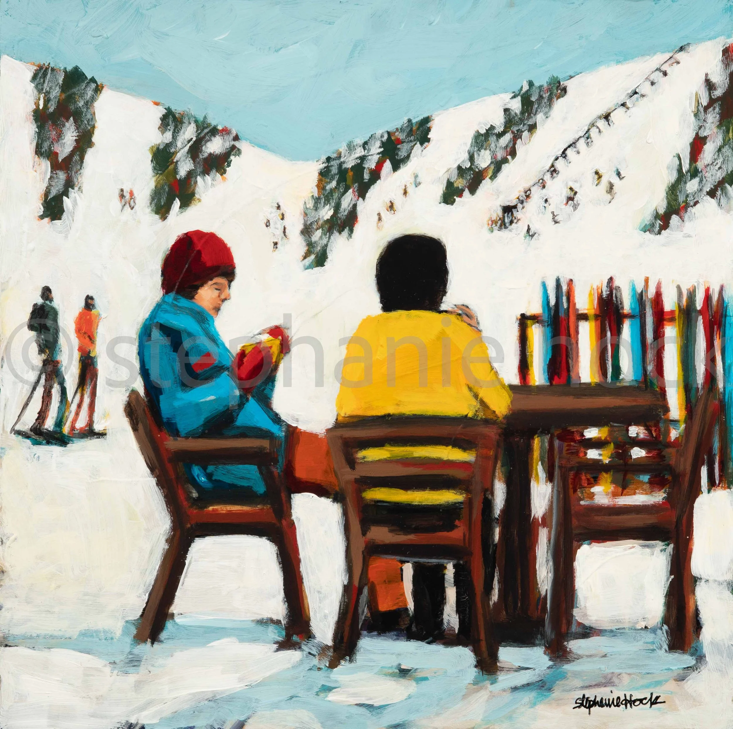 My friend Kim said once, “I go skiing for 1. The Views 2. Lunch 3. The Company 4. Actually Skiing… In that order!!” Ha ha. But don’t we do so many things for the people we get to connect with? I’m excited to connect with you TONIGHT at the 135 Show (where this painting, “Warming Up” 12x12 will be available)!! Show goes from 5:00-8:00 pm at @cottonwoodccutah (1780 Lakewood Dr, Holladay, UT ). See you there!