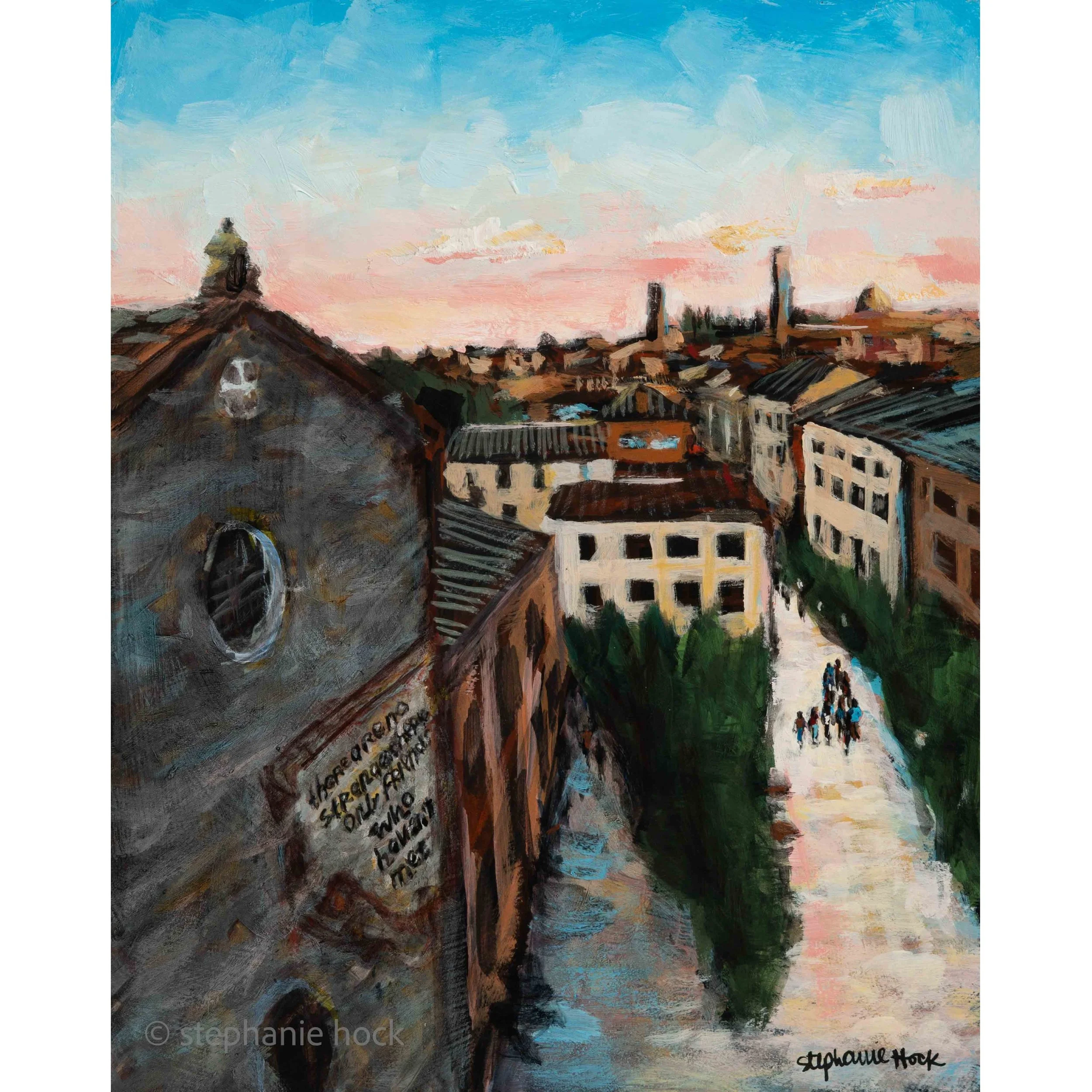 3–a commission from a woman who had just lived in Italy and wanted something to capture her time abroad with her friends. We even combined photos to add one of her favorite quotes to the brick wall (because artistic license means we can make it YOURS).