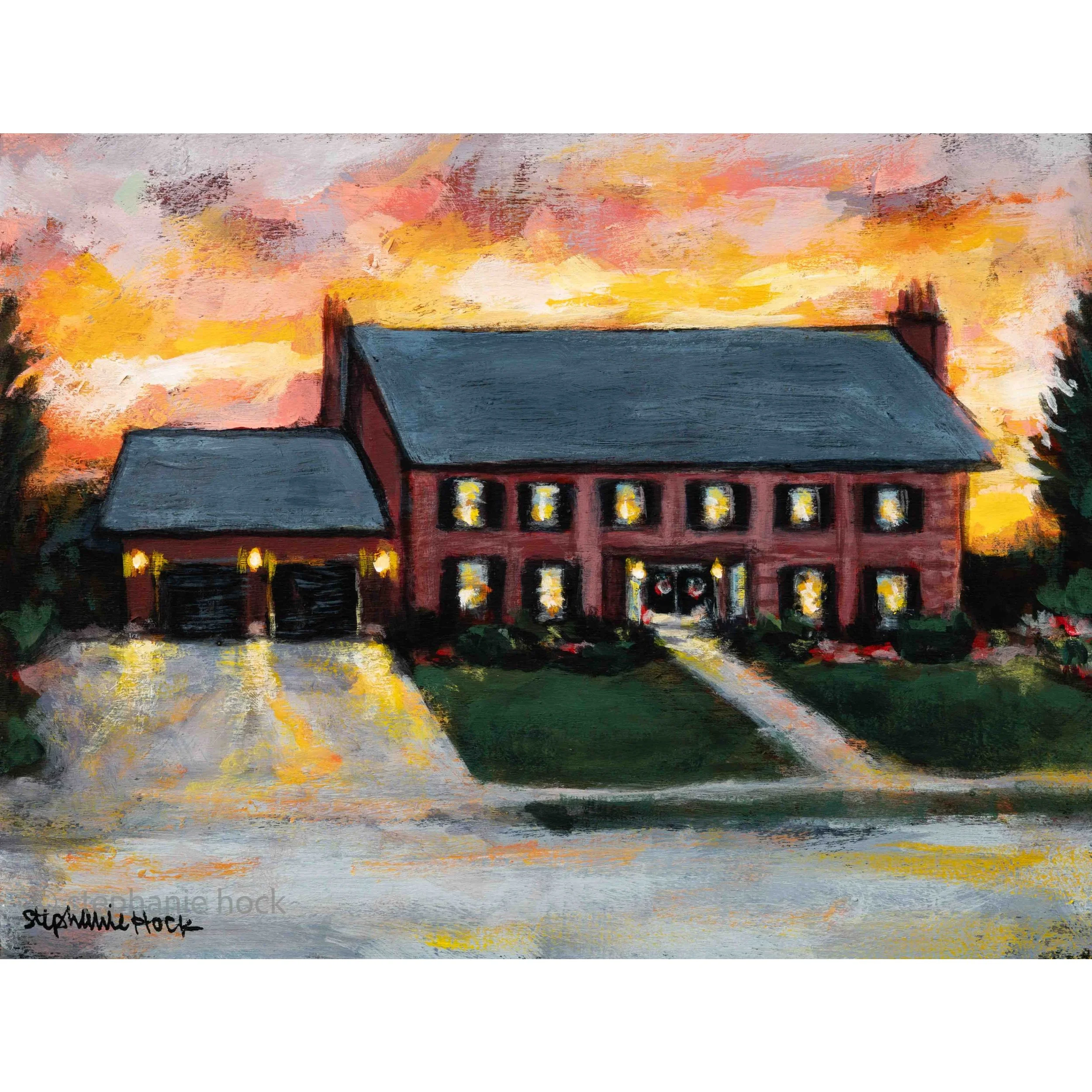 2-a surprise from another wife to her husband based on a perfect photo a neighbor took of their house at sunset that they both loved so much.