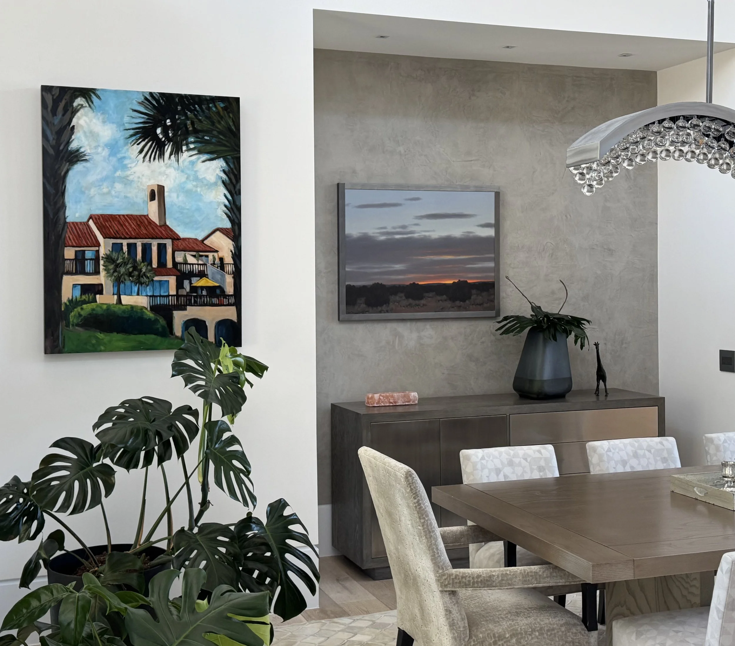 A: I often tell people to think about where they’re thinking of hanging the piece of art and then take blue painters tape and mark out the spot on the wall in that exact measurement. Collectors are often surprised to see that the painting is either too small on a wall or not the right fit for the space. It’s hard to picture how much space things take up without visuals. But once you measure and mark it on your wall, you’ll know better what size range to buy.