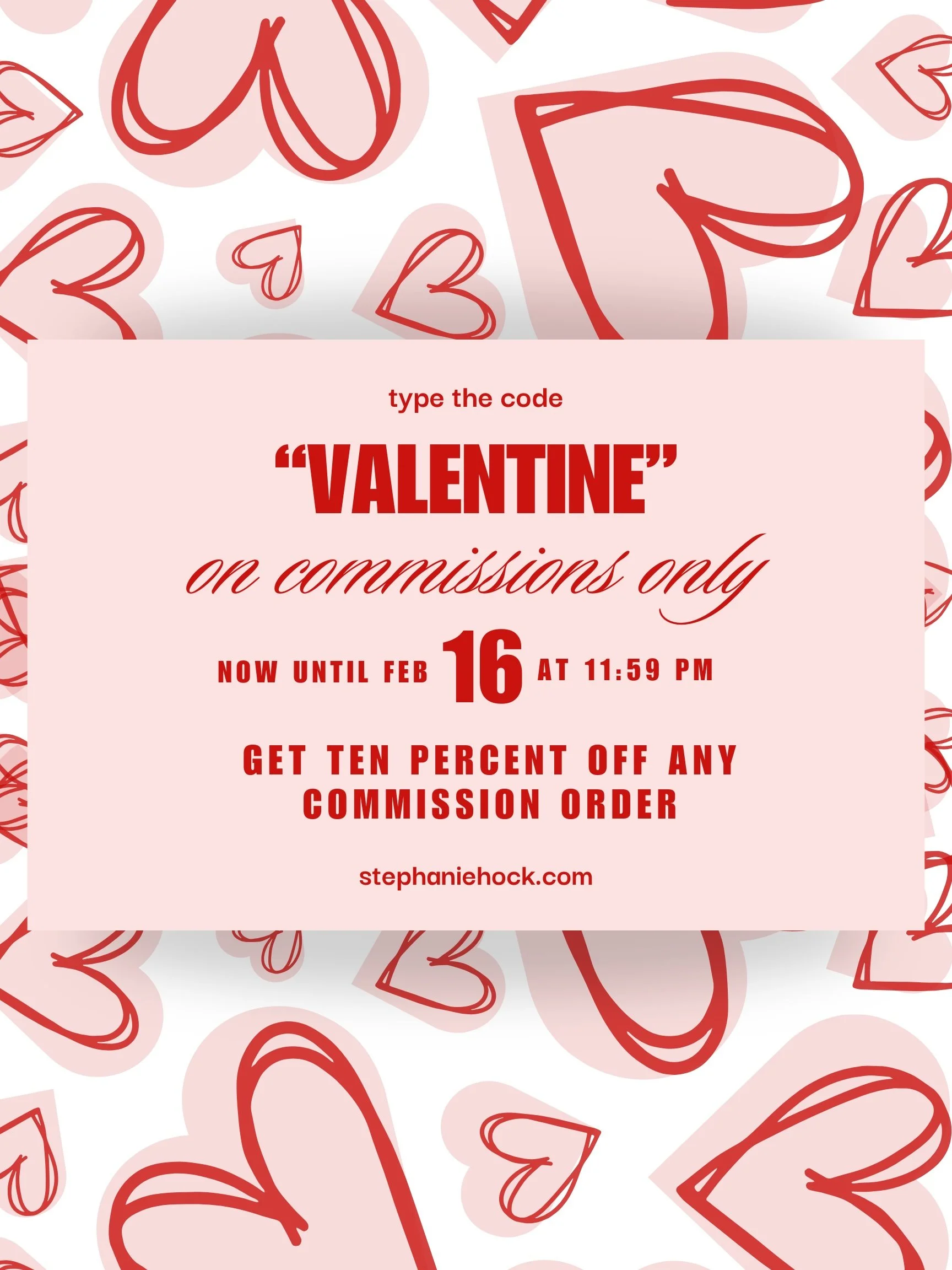 Today is the last day of the commission sale! Type “VALENTINE” in at checkout until 11:59 pm tonight (MST) to get the discount!
