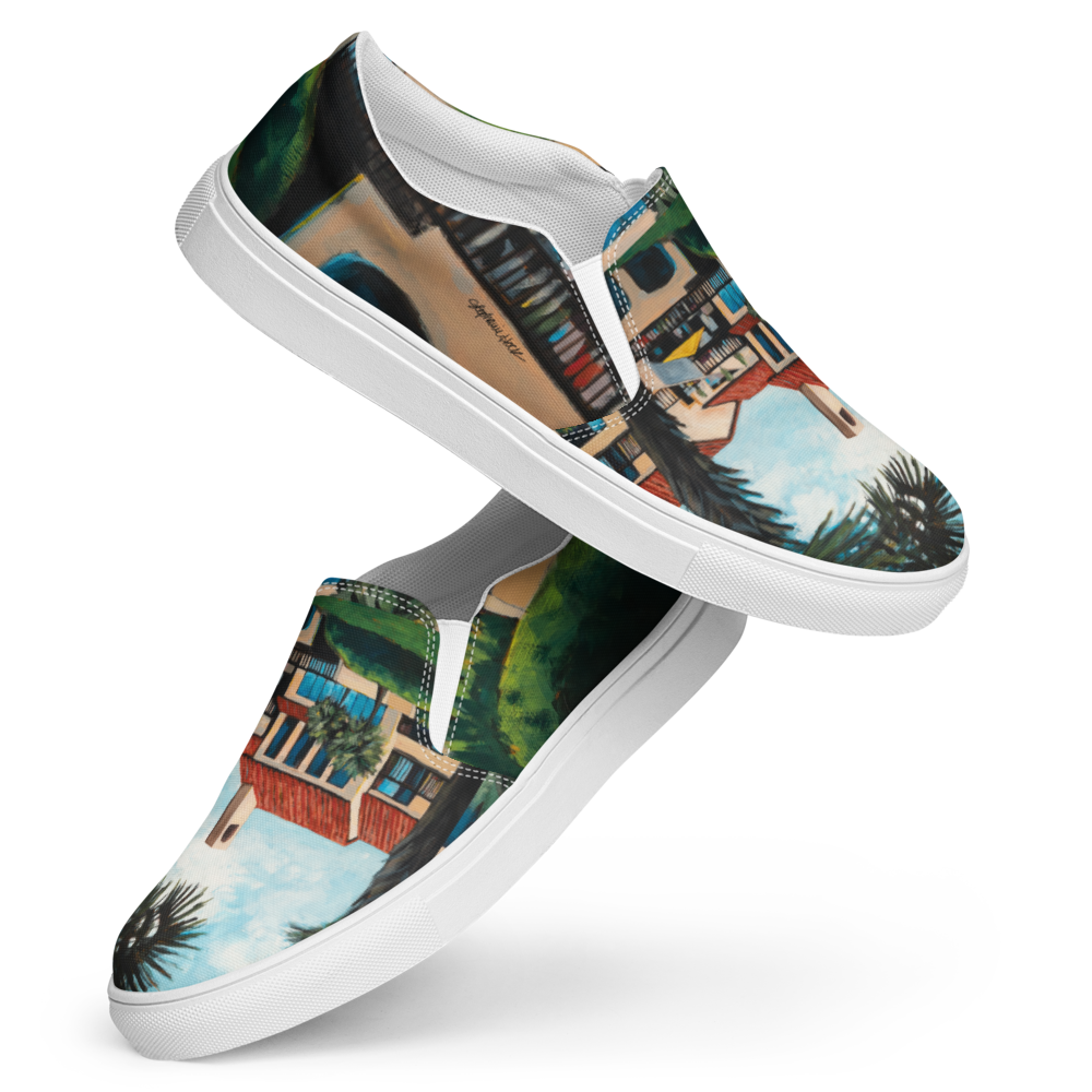 This is a commission I did for a wonderful collector as a surprise to his wife. He loves buying my shoes and asked if I would do a commission project so he could have a custom pair of shoes. We have to make the art first so there’s an image I can use for the merch products, so we talked about that and he decided to do a fun big painting for his wall and then once it was done, we used the image and made the shoe merch he wanted too. I love the endless opportunities commission projects make for us— each one is so fun and unique. And why not bring joy to every space we inhabit, right?