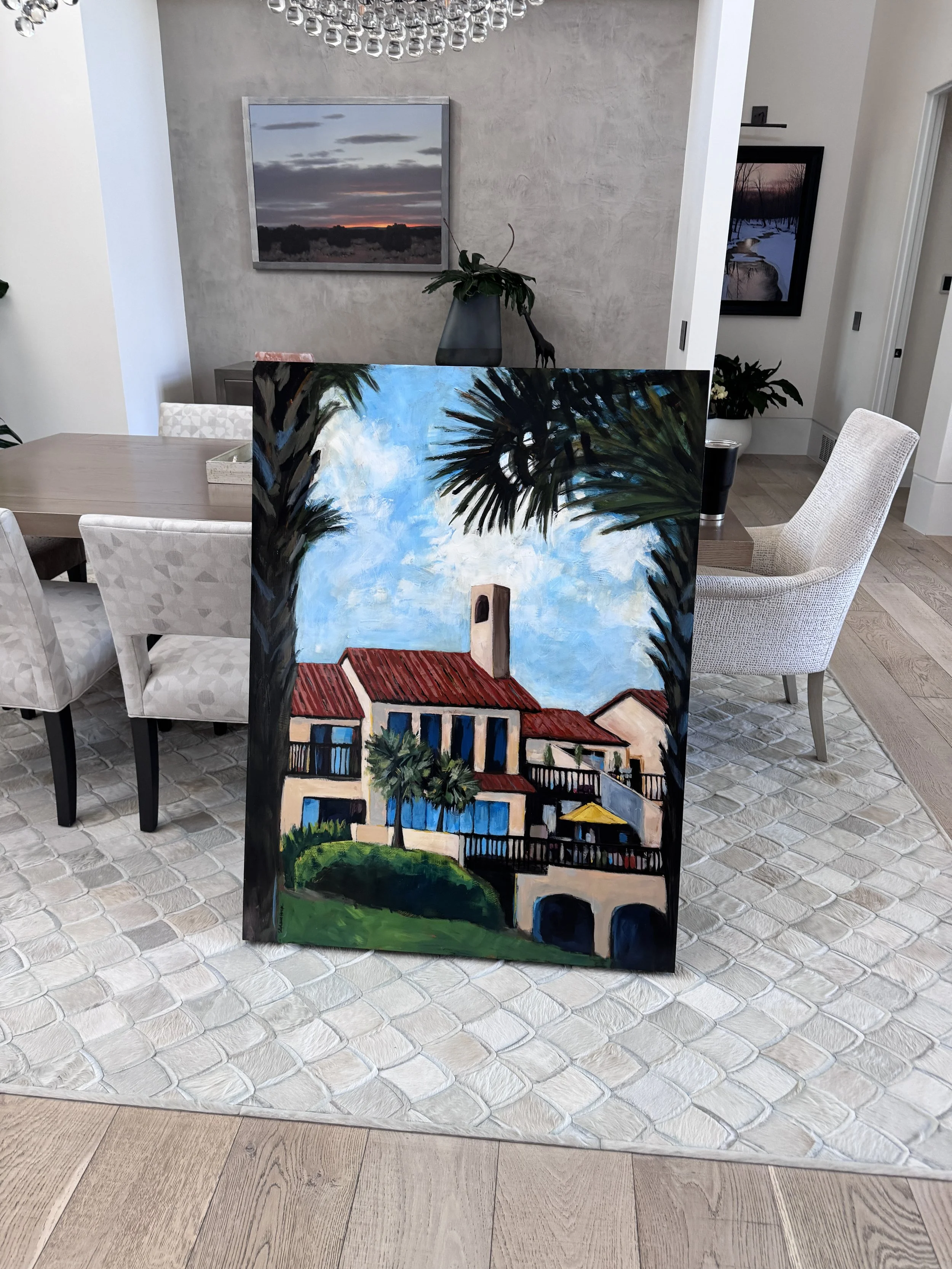 A: Absolutely! I do this all the time for paintings and commissions. It’s hard to get all the right sources in the same photo, but we’ll often take the sky from one picture and the specific house or boat or car or bike or whatever from another photo and then sometimes the people (or the colors of their clothing or height compared to each other or uniforms or things like that) from another photo and sometimes there’s a detail like a bird or flower or object someone cares about that also needs to be added and we can pull that in. This is the expertise of being the artist and being able to aesthetically match these elements, but still in a proportional way with an eye for design and composition (instead of a bad AI or photoshop job). At the end of it, our goal is still to create fine art that can hang beautifully on your wall for years to come, and the creativity of original art still holds so much magic for that.