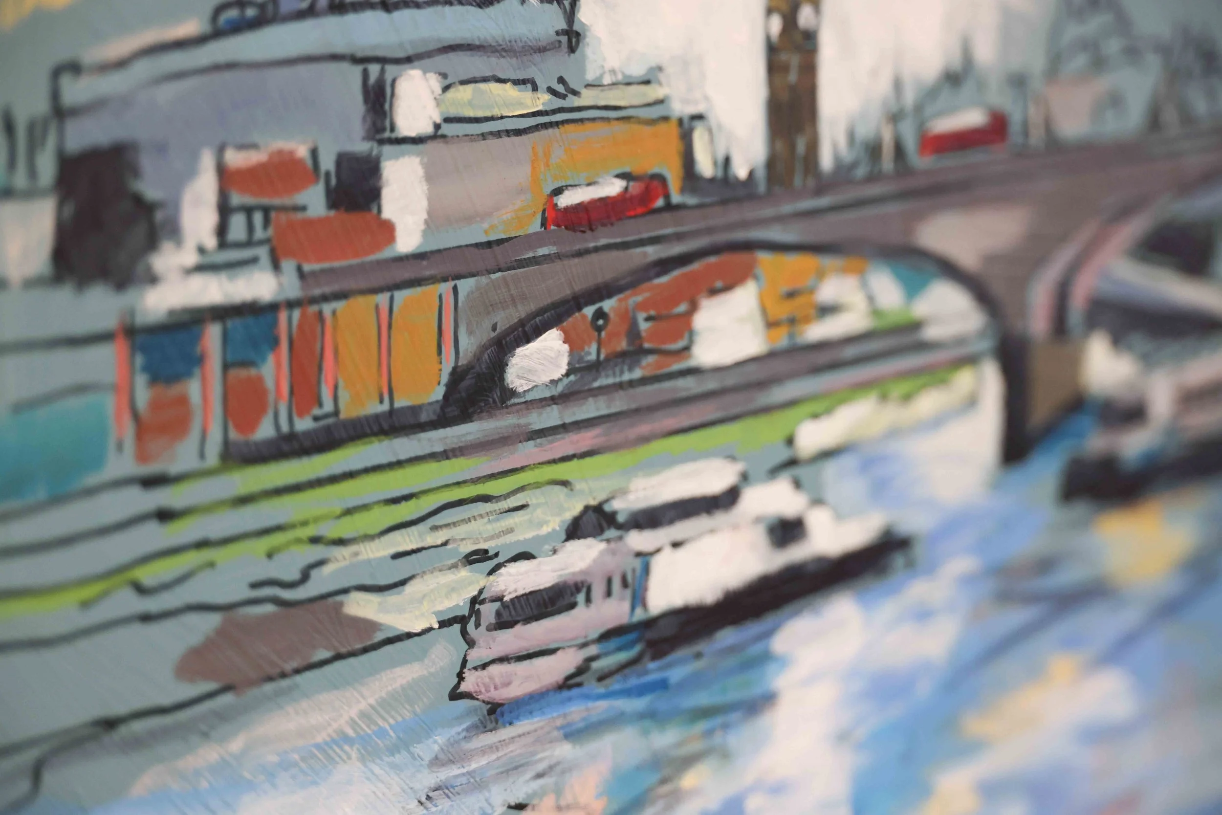 One thing I wish I’d had more time to explore during this show (maybe a future show?) was more comparison on how these three cities (New York, London and Paris) relate to each other. How are they the same? How are they different? Could I paint things from one of them and the viewer wouldn’t know which city it belonged to? What makes the people in each place similar? What makes them unique? It was amazing to me how interesting it was to travel outside of my own country (different money systems, train systems, government systems, restaurant rules… more things than I can count) and then even how different it was to be in countries where English isn’t the primary language. It’s always so eye opening to be in the minority of any situation and to be a learner/beginner when everyone else seems to understand things. It humbles you fast and reminds you to be so grateful for the people who show grace and kindness. Like the bakery owner in Paris on the Champs-Elysees (a street we spent the whole trip trying to learn to pronounce the right way and could not stop laughing about every time we got it wrong) who didn’t rush us along but made us sit and enjoy extra pan au chocolat and complimentary cocoa so our tired, wet, cold selves could rest as he told us all about how Lady Gaga was his girlfriend back in New York. He reminded me that good people are everywhere and all of us just want to be treated with kindness and love. Whichever city we may find ourselves in, there is warm light shining in all of the places and I hope each of us can find it.