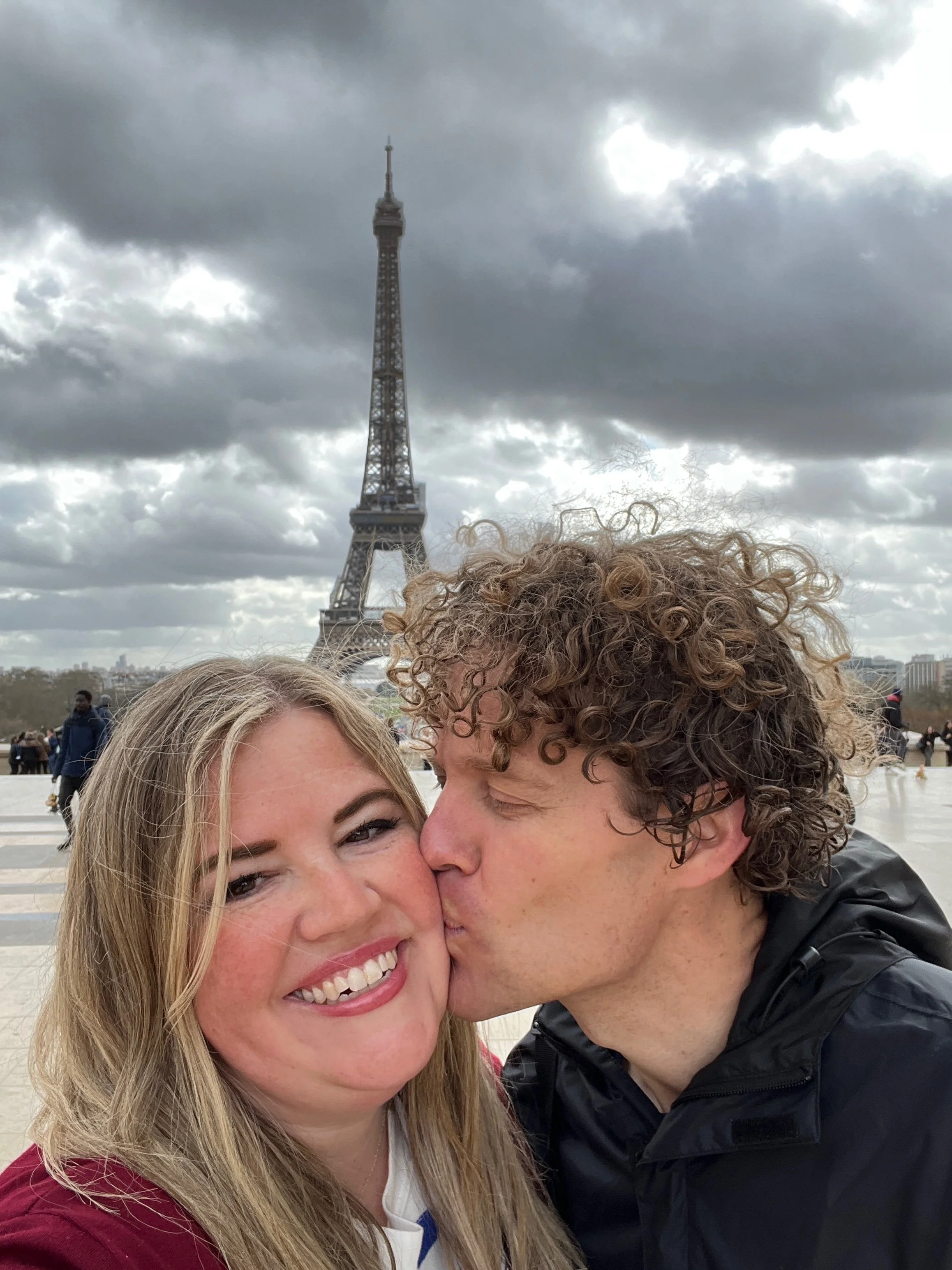 My first glimpse of her was out the airplane window. I didn’t expect that I could see her from up in the air but she was so majestic and iconic that she rose up out of the city like a beacon. It sent a little thrill in my heart to see her with my own eyes. I’ve waited my whole life to see the Eiffel Tower myself and here I was. It makes sense that Paris is the city of love and the city of light, because this whole trip was the most grand gesture of love I’ve ever received. My husband went through two different masters degrees during our marriage and I was right there next to him, supporting him as much as I could, handling the homefront, editing his papers, helping navigate our lives around his class and homework schedules. Every semester we’d save up the money for the next semester so he could keep going to school and progressing in his education. The plan was that he’d keep going all the way and get his PhD, and we worked for years to make that goal happen. In the end, there was no path that got us there and it was disappointing to let that dream go. But, this is how incredible my husband is. He came home the day he found out he didn’t get in to the last PhD program he applied to and handed me an envelope. Inside was a handwritten note, “Plane ticket to your choice: France, Italy or Hawaii.” All my dream destinations that I had never been to. He wanted to take the money we’d saved up for his next round of schooling and use it to make my dreams come true instead. Love. Love also looks like riding the elevator up the Eiffel Tower with me and then the wind being super crazy that day and the whole tower swaying back and forth and same husband who doesn’t love heights holding on to the railing and saying, “Stay as long as you want and enjoy it all” while hating the vertigo and loving me at the same time. This man. This city of love. Me sacrificing to make his dreams come true. Him sacrificing to make my dreams come true. Us laughing our way through the imperfect beauty of both our dreams and both our ups and downs. The Eiffel Tower will have the softest spot in my heart for representing all of this in my story. Light and love forever.